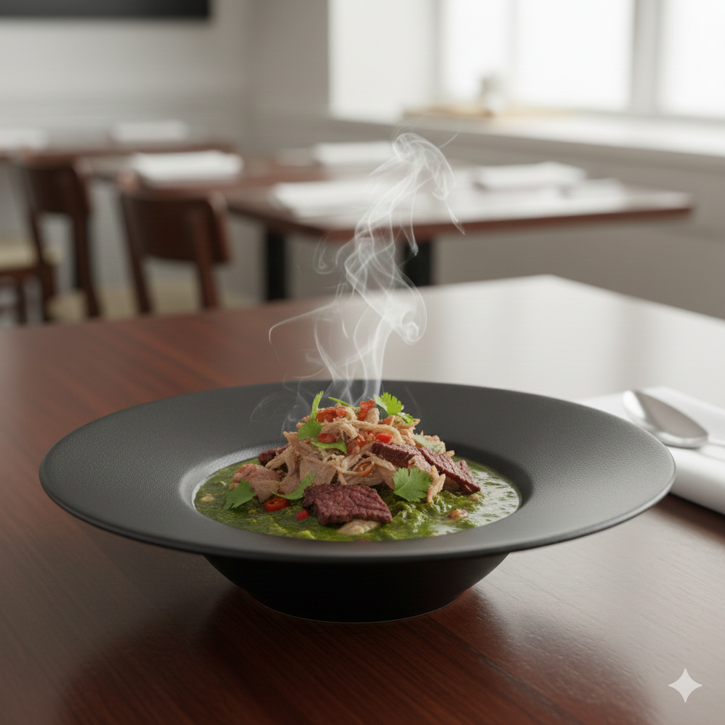 Traditional West African cassava leaf soup with rich, savory flavors.